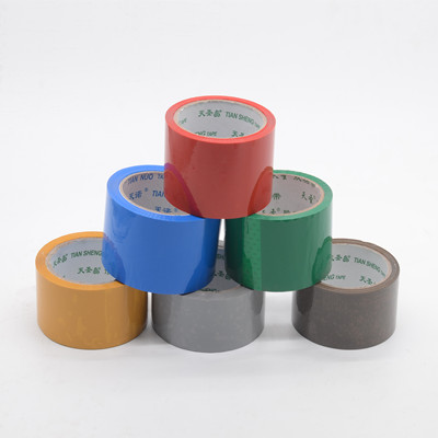 天圣彩色封箱胶带产品说明: 基材:聚丙烯薄膜 规格:规格多样化,可定制 胶系:压敏水性胶水 颜色:8种,红色、绿色、蓝色、黑色、乳白色、灰色、棕色、米黄色 特性:韧性强、不易断、进口色浆识别效果提升26.6%。